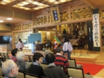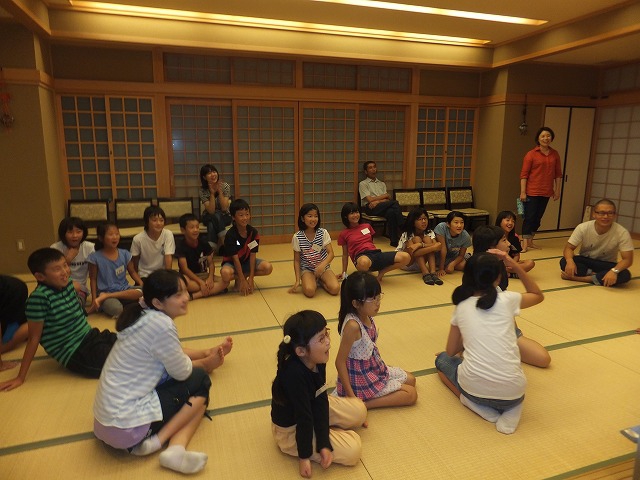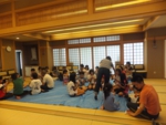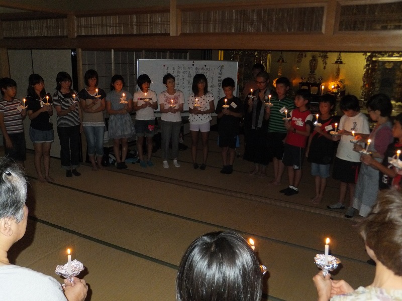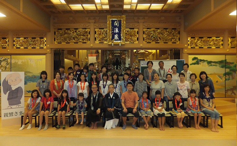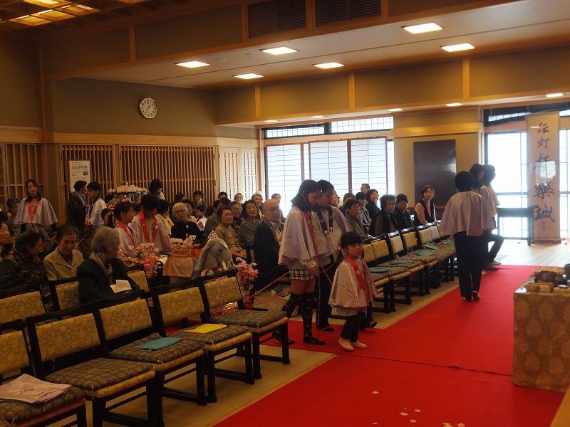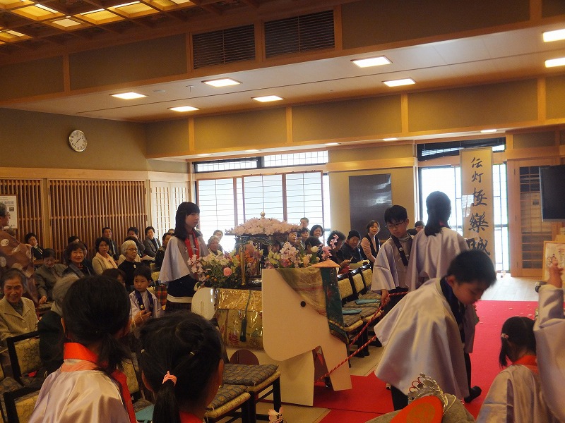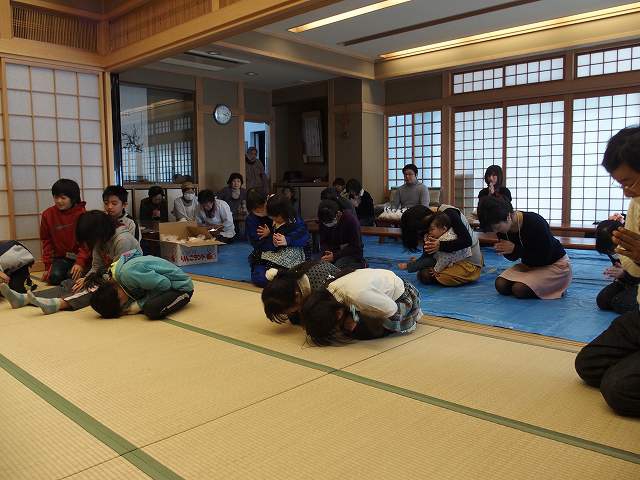お寺で楽しむ一年間2014年 4月 花まつり 8月 夏休みお楽しみ会 12月 おもちつき会 4月 花まつり 昨年誕生した,ごくらく寺の皆さんによる手作り象さん 博(はく)象くん&さくらちゃん1才を迎え歩けるようになりました。 子供さんで花まつり象さんの行進をしました。さくらちゃんは、幼稚園&小学生低学年お友達と共に行進。 博(はく)象くんは、小学校卒業生と共に行進です。 お祝いのハンドベル演奏 恩徳讃 象さんの行進を終えてホッと一息。 お彼岸法座、鍋島直樹先生のお話を、子供さんと一緒に聞きました。 小学校卒業生 花御堂の前で記念写真 中学生になっても、お寺にいつでも遊びにきてくださいね。 8月 夏休みお楽しみ会 2014年のお楽しみ会は、昨年に引き続き、しんちゃん先生&そうちゃん先生をお迎えし、楽しい時間をすごしました。 ちかいのことば「仏の子は、必ず約束を守ります。」 紙芝居「一休さん」 川辺さんの手作り。 紙芝居もナレーションも、プロ並みで、感動しました。 楽しみにしていたゲームの時間がはじまりました。 大盛り上がりのゲームに みんな笑顔に。 先生方の名リードにみんな夢中。しんちゃん先生そうちゃん先生ありがとうございます。こども会一同より おやつは、かき氷。みんなで食べると一層おいしいですよね。いちごにカルピス、練乳が人気でしたね。 食後は、イラストリレーゲーム。順番に前の人の絵を見て、描いていくののですが、、、。ライオンからネコ、違う動物になってますよ! 最後はあみだ様のお灯明をいただきキャンドルサービス。 六年生が、夏休みの思い出、今日のお楽み会の感想を発表しました。楽しかった~。一番の思い出ができました。仏の子としてこれからも、子ども会に参加したいです。 12月 おもちつき会 早朝から門推員、婦人会、保護者の皆さんで餅つきの準備。前日は、もち米研ぎ等々準備をしていただき、たくさんの方々のお力で続けさせていただけます。 最初のお餅は、あみだ様へのお供え餅です。なもあみだぶつ お餅つき名人、中村博さんのご家族が、お餅つきを助けてくださいます。おかげさまで、絶品のおもちのご縁にあわせていただけます。感謝。 お勤めの後、子ども会餅つきスタート!! 私達も、よいしょ!よいしょ! 杵は女の子には、かなり重いけど、頑張れ!! こどもさん 大人のみなさまのご協力のおかげさまで大成功でした。 最後はみんなで、なもあみだぶつ。 前のページへ戻る |1|2|3|4|5|6|7|8|9|10| 次のページへ進む J(じょうど)フレンズの歴史 おもちつき会 今 昔 昔のこども会 お寺で楽しむ一年間 お寺で楽しむ一年間2013年 お寺で楽しむ一年間2014年 お寺で楽しむ一年間2015年 お寺で楽しむ一年間2016年 お寺で楽しむ一年間2017年 お寺で楽しむ一年間2018年